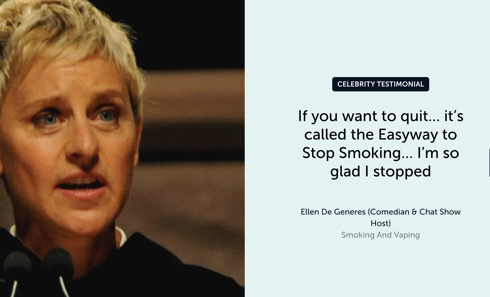Allen Carr's Easyway shows you how this is based on a trick. We teach you to correct your perspective in a way that leaves you with no desire to continue. And with no desire to continue, it doesn't take willpower to be free. Join the millions who have changed their lives using this simple approach.